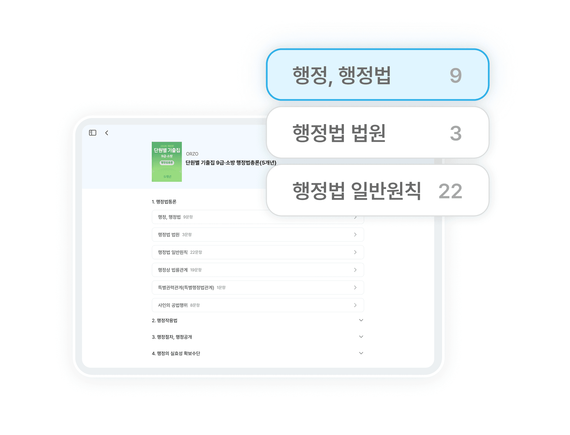 오르조 단원별 기출집은 수험 적합도를 고려하여, 학습 효율이 가장 높은 범위로 기출을 담았습니다.