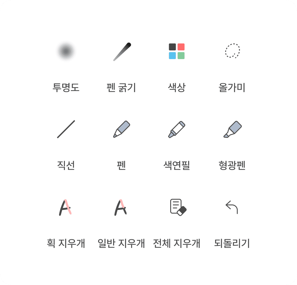 12가지 필기 도구 지원